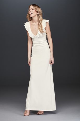 David's bridal cascading ruffle printed georgette midi dress style 52354db. While wedding parties may be getting bigger, many couples are still embracing a casual tone to their celebration, said heather mcreynolds, david's bridal vice president of bridal and dresses. David's bridal offers clean & modern, elegant wedding gowns in lace, beach perfect, short & minimalist dress styles! View our selection of wedding dress, it makes your wedding day memorable. Picture a moonlight affair with a gentle breeze blowing to set the mood. Thank you for your excellent service. Shop our exclusive collection of gorgeous wedding gowns, bridesmaid dresses, and more—all at amazing prices. Check out our curated selection of wedding dresses, with most styles are under $100! There are quite a number of neckline options, from halter and scoop to sweetheart and illusion. Sample and used wedding dresses and bridal party gowns. New and preowned, with safe shipping and easy returns. A casual wedding gown will be exactly what your event calls for. Discover your dream dress online or make an appointment at a bridal shop near you.